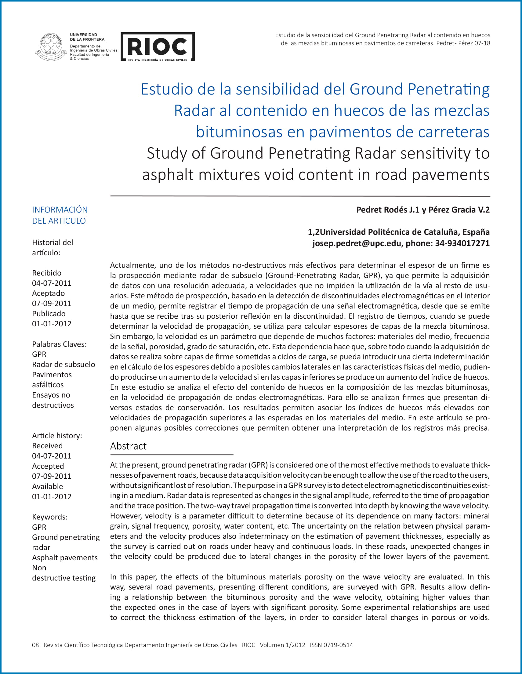 Estudio de la sensibilidad del Ground Penetrating Radar al contenido en huecos de las mezclas bituminosas en pavimentos de carreteras.