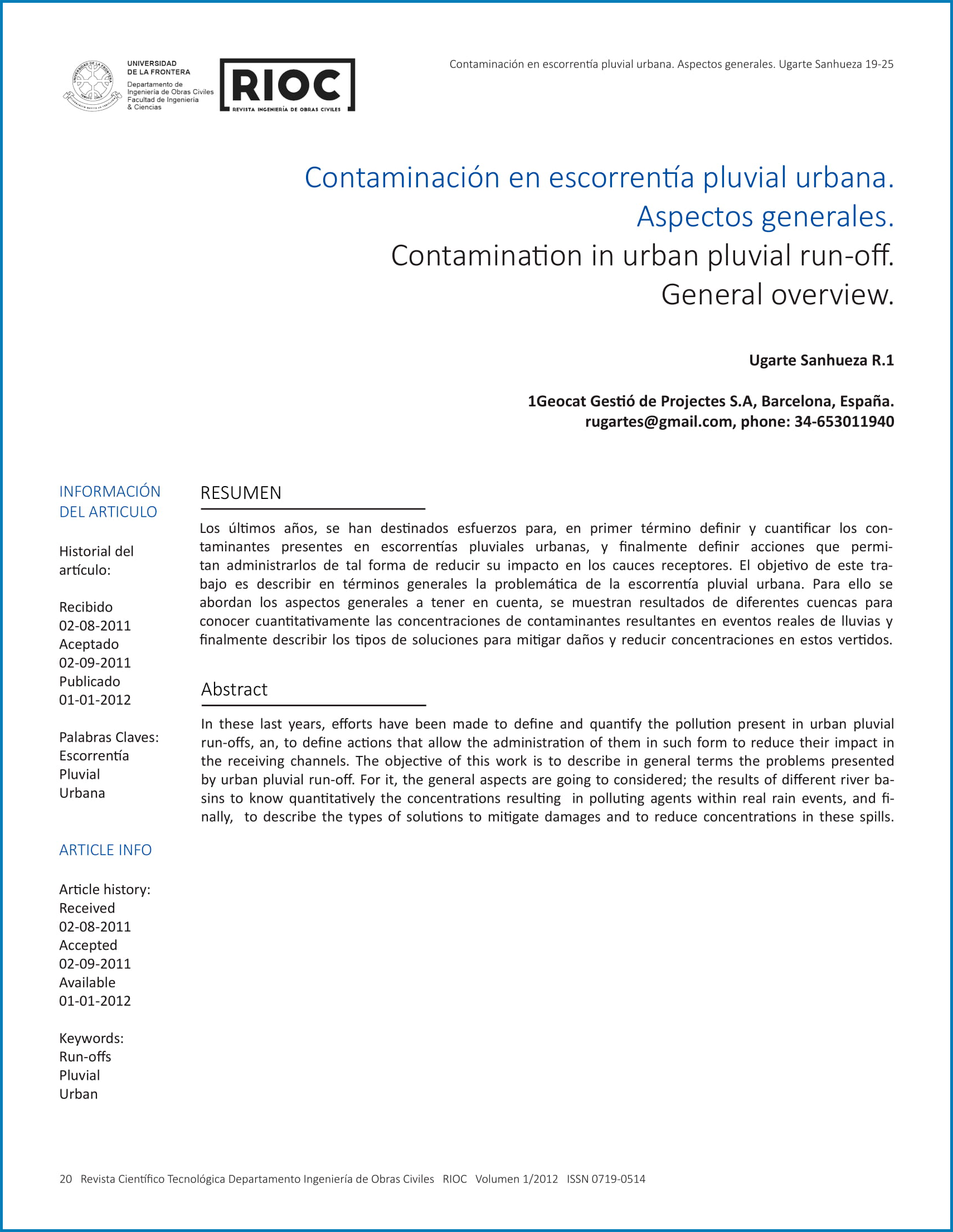 Contaminación en escorrentía pluvial urbana. Aspectos generales.