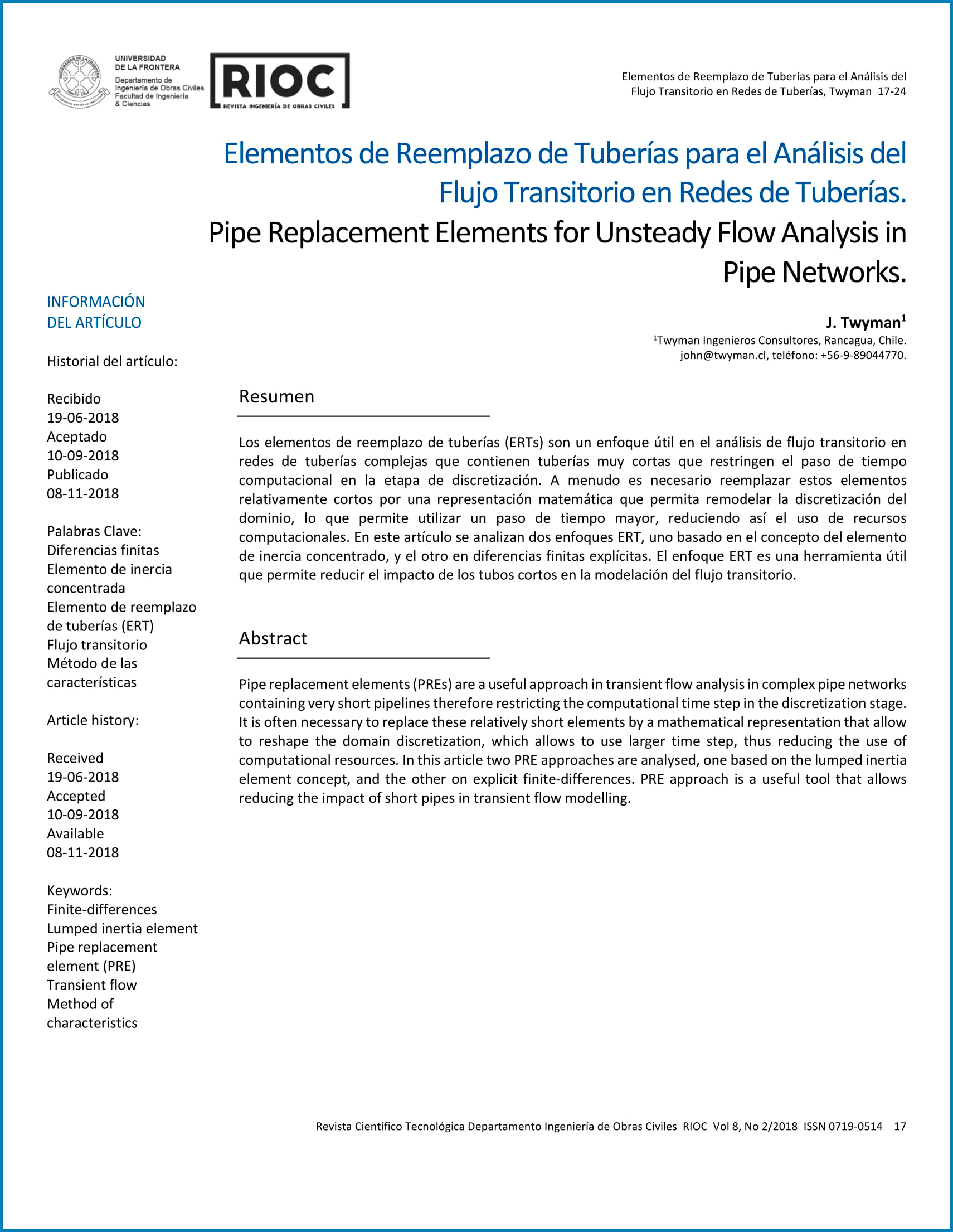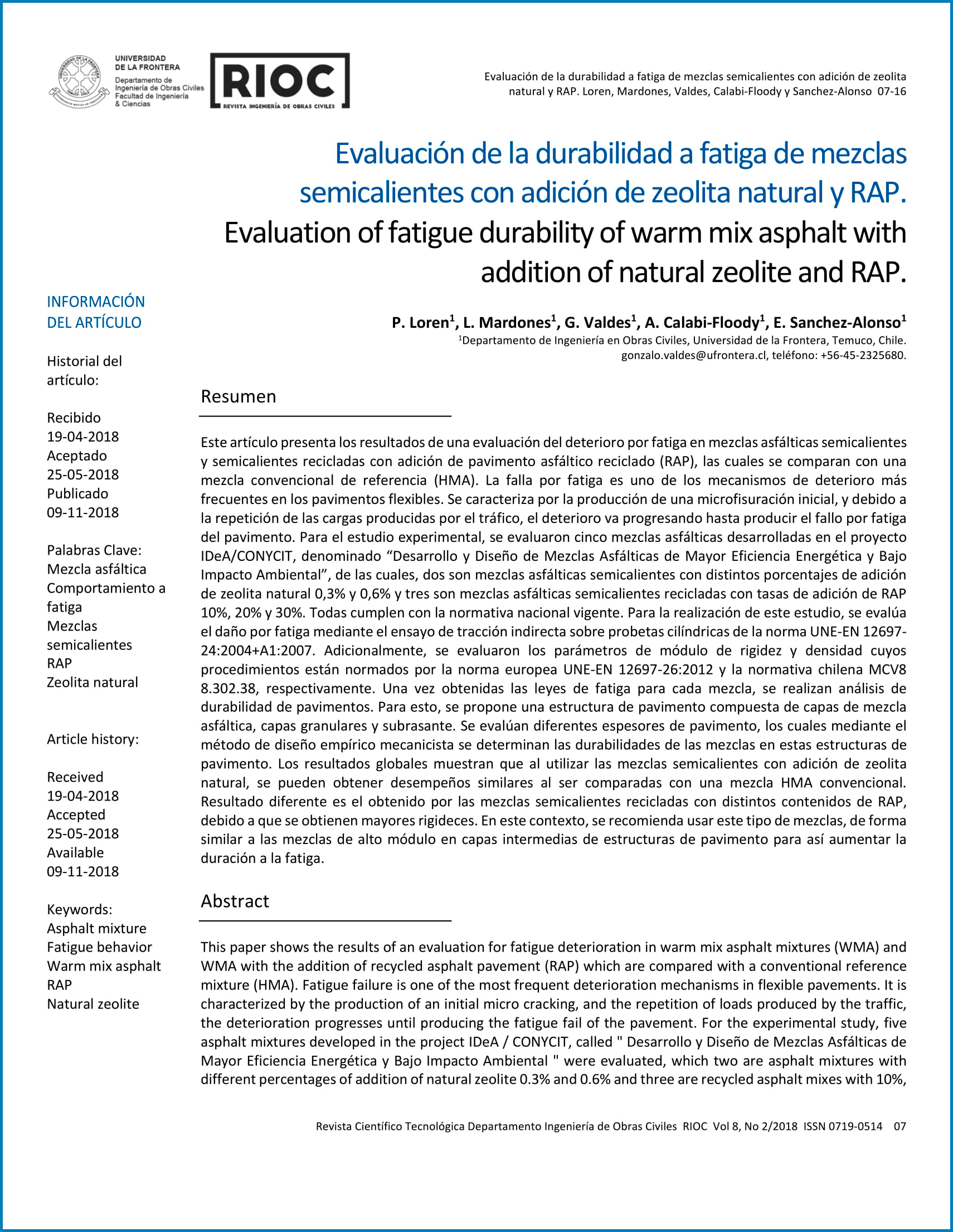 Revista Ingeniería de Obras Civiles - Publicada 2018