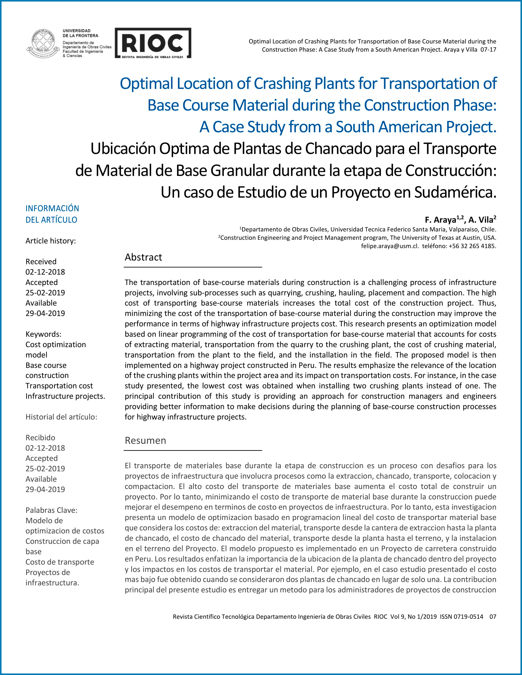 Ubicación Optima de Plantas de Chancado para el Transporte de Material de Base Granular durante la et