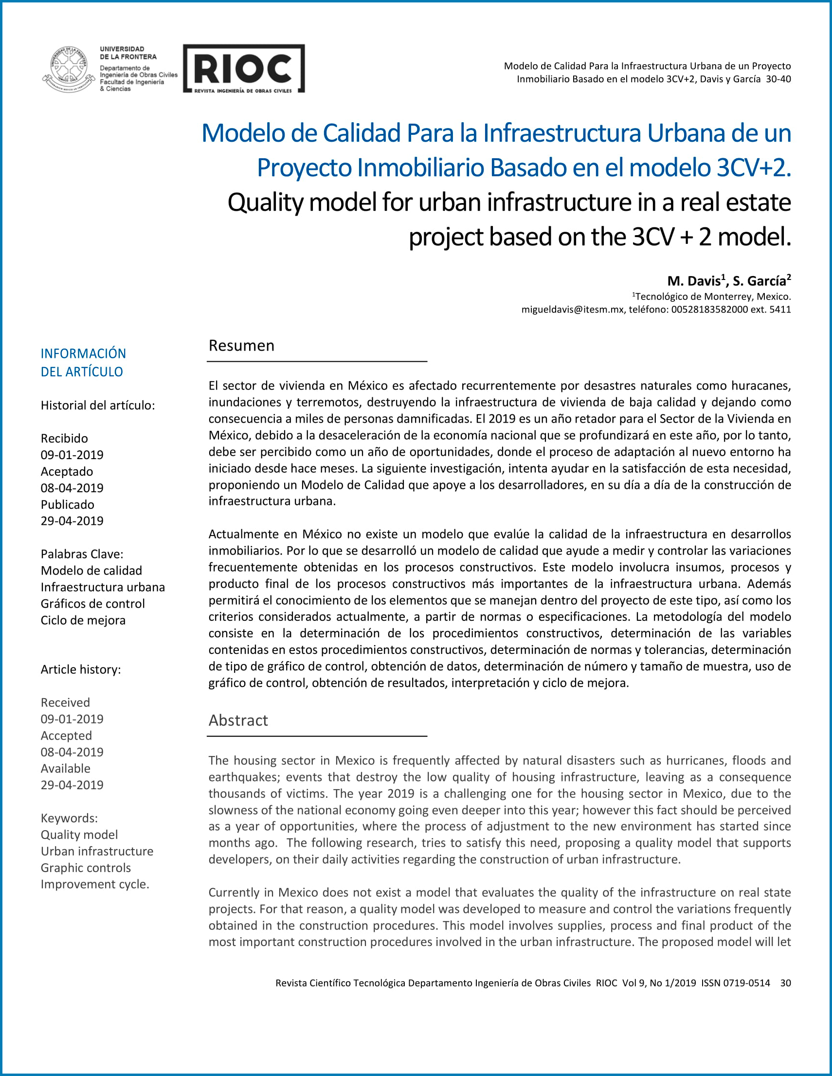 Modelo de Calidad Para la Infraestructura Urbana de un Proyecto Inmobiliario Basado en el modelo 3CV+2