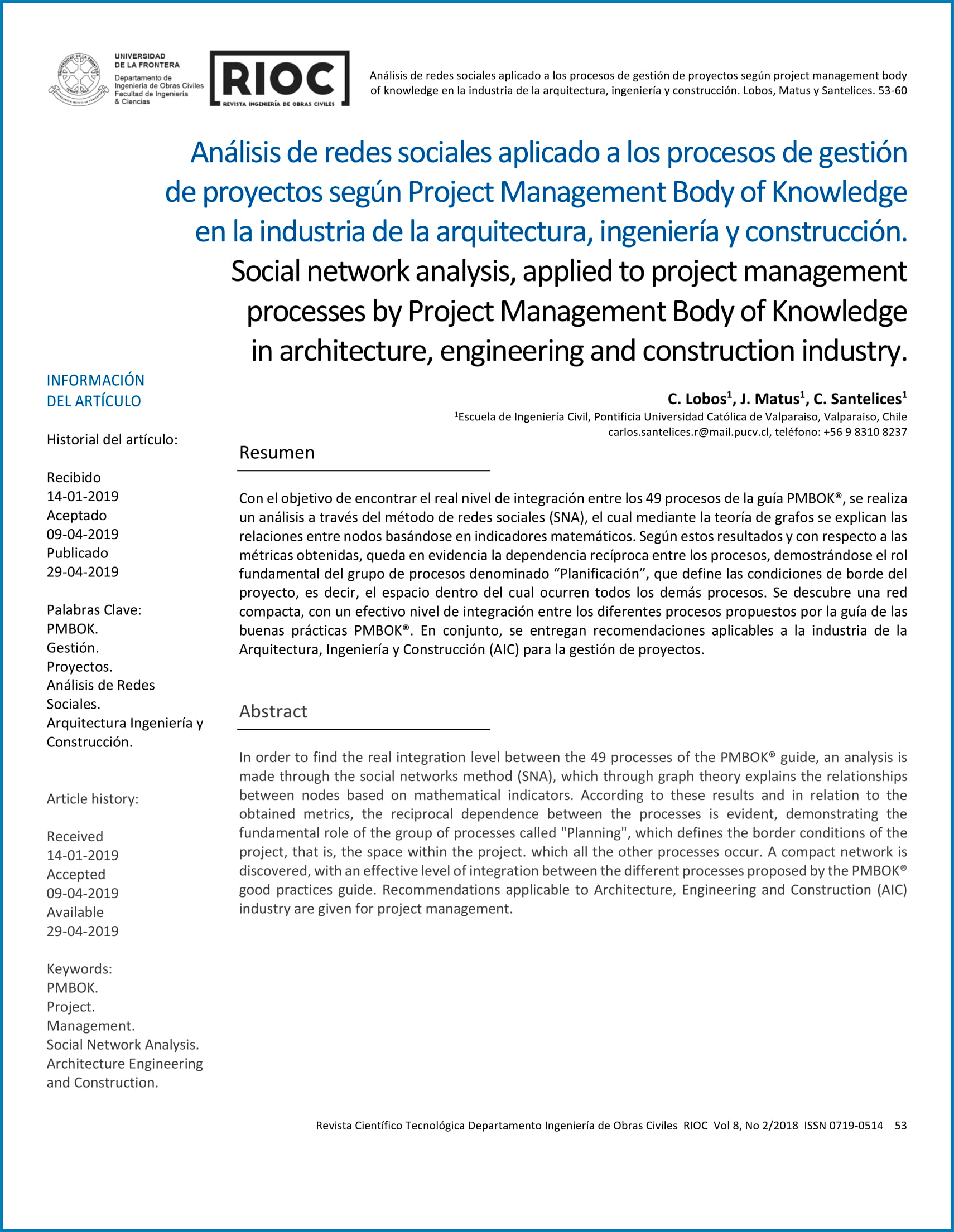 Análisis de redes sociales aplicado a los procesos de gestión de proyectos según Project Management Body of Knowledge en la industria de la arquitectura, ingeniería y construcción